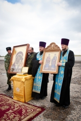 Крестный ход был инициирован командованием Дальней авиации и руководителем отдела по взаимодействию с вооруженными силами и правоохранительными учреждениями Покровской епархии протоиерея Виктора Лузгана. В нем приняли участие заведующий сектором ВВС России Синодального отдела по взаимодействию с вооруженными силами и правоохранительными учреждениями протоиерей Константин Татаринцев, священнослужители Покровской епархии, командующий Дальней авиации Военно-воздушных сил России генерал-лейтенант А. Д. Жихарев, офицеры личного состава, представители государственной власти и общественности, казаки, сопровождающие икону Богородицы.