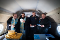 "Наши предки не знали таких форм паломничества, как крестный ход по воздуху. Но замечательно, что наша Церковь, консервативная по своей природе, незыблемая в исполнении тех законов и установлений, которые нам оставили святые отцы, приемлет все то новое, что дарит жизнь, в частности и возможность подниматься в небо», – отметил отец Константин. Он напомнил, как в 1941 году вокруг окруженной врагом Москвы был совершен крестный ход по воздуху с Тихвинской иконой Божией Матери. Многие называют настоящим чудом, что именно после этого настали сильные морозы, помешавшие фашистам захватить столицу. Отец Константин поделился также воспоминаниями об участии в воздушном крестном ходе вокруг Украины. «Такие события творят новейшую историю. И в череде таких поистине исторических событий – крестный ход, который мы совершили сегодня. Вся ваша епархия оказалась под благословением Божией Матери и святых угодников Божиих Косьмы и Дамиана", – отметил Тихонов.