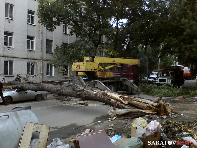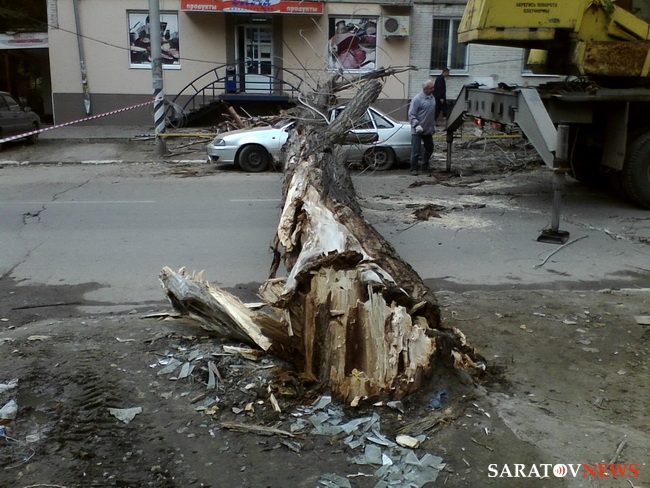 Сегодня утром около 4.30 в Саратове на улице Новоузенская, недалеко от пересечения с Рахова, на проезжую часть и на автомобиль упало дерево. Об этом Saratovnews сообщили в Городской службе спасения.
