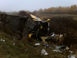 Как сообщил корреспонденту представитель регионального УГИБДД Иван Курносов, в автобусе ехали рабочие-вахтовики с НПЗ, 48 человек. Один из них погиб, около десятка отправились в больницу, остальных с места происшествия уже увезли. Второй погибший в катастрофе – водитель "МАЗа". На месте дежурят сотрудники Областной службы спасения, ДПС, МЧС и полиция.