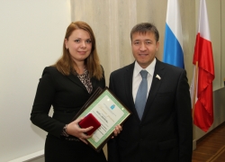 Вчера в Белом зале правительства Саратовской области состоялось торжественное вручение наград Выставки "Золотая осень 2013" предприятиям пищевой промышленности и сельхозпроизводителям. Дипломы вручил министр сельского хозяйства региона Александр Соловьев. Помимо этого, "Дымок" получил Почетную грамоту министра сельского хозяйства области "За высокий вклад в развитие агропромышленного комплекса".