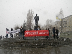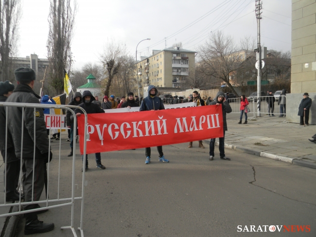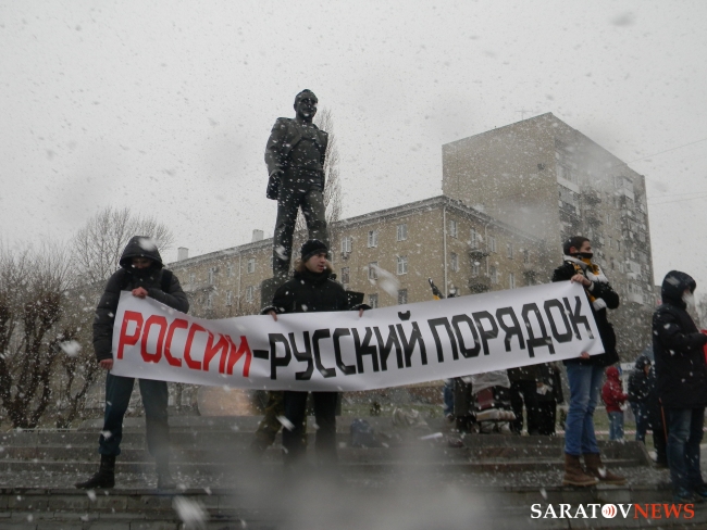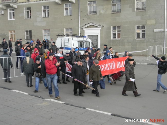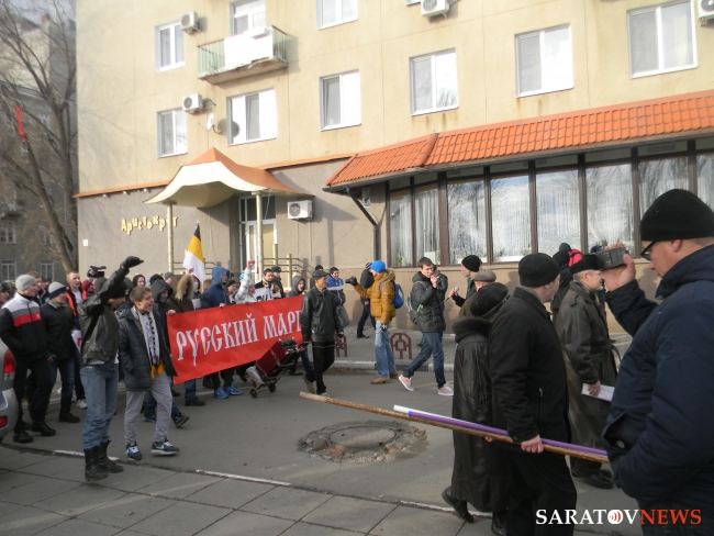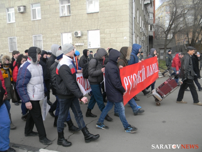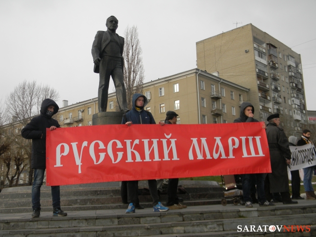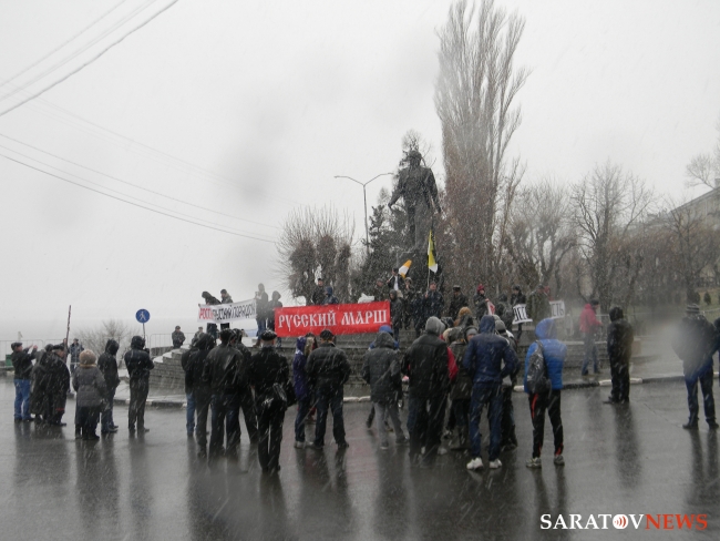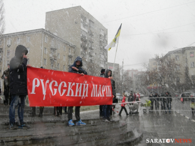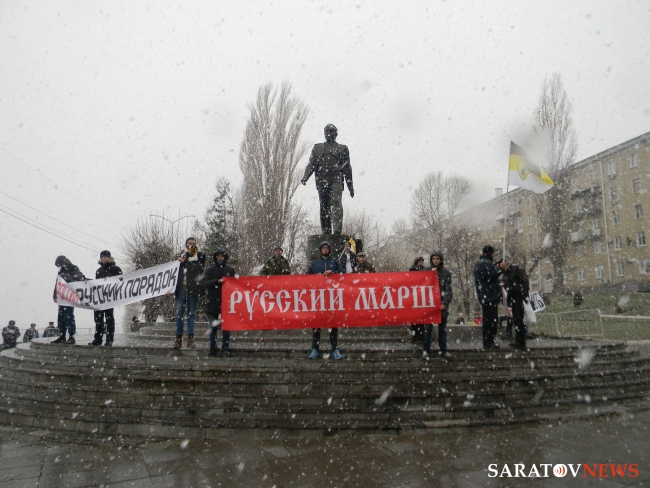 В субботу, 30 ноября, в Саратове прошел "Русский марш", начавшийся с шествия от переcечения улицы Некрасова и Набережной и завершившийся митингом у памятника Юрию Гагарину. Организатор - руководитель Саратовского регионального отделения организации "Народное ополчение Минина и Пожарского" Георгий Козин/