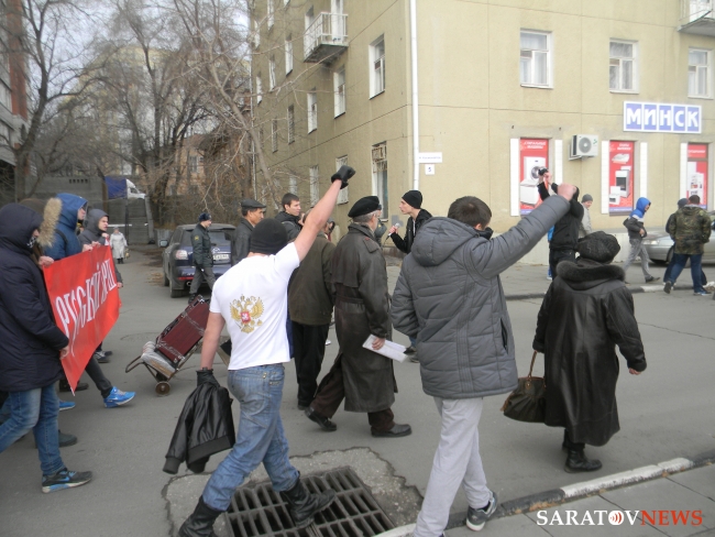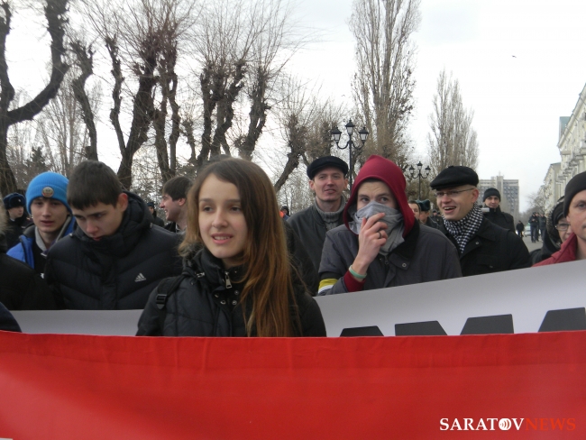 Отрезок старой Набережной от улицы Некрасова до памятнику первому человеку, побывавшему в космосе, активисты преодолели без приключений, громко скандируя речевки. Единственная претензия, которая поступила саратовцам от случайных прохожих - слишком тихо кричат. Молодые люди, высказавшие недовольство, тут же продемонстрировали, как это нужно делать, однако отказались поддержать акцию и встать в колонну.