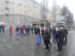 Последний сюрприз для марширующих приготовила погода. Как только демостранты дошли до конца и начали митинг, как с неба посыпался снег. Поначалу почти незаметный снегопад потихоньку усиливался по мере выступления участников, пока не превратился в крупные мокрые хлопья сразу таявшие на земле. Примечательно, что снегопад завершился практически одновременно с митингом.