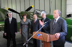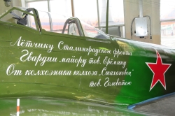 "В годы войны саратовский крестьянин положил начало великой традиции всенародной помощи фронту, купив на свои сбережения боевой самолет. В преддверии 70-летия Победы авиаремонтный завод поддержал почин земляка и восстановил самолет за собственные средства. И вот в музей краеведения возвращается военный раритет, который на сегодняшний день можно увидеть только в Саратове", - подчеркнул глава региона и выразил уверенность, что еще много поколений саратовских школьников и студентов "будут изучать события войны, глядя и на этот самолет".
