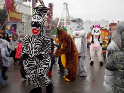 Все мероприятие на площади работали ростовые куклы сказочных персонажей: зебры, коровы, зайцы. Они развлекали публику, поддерживая праздничное настроение и с удовольствием фотографировались вместе с детьми.