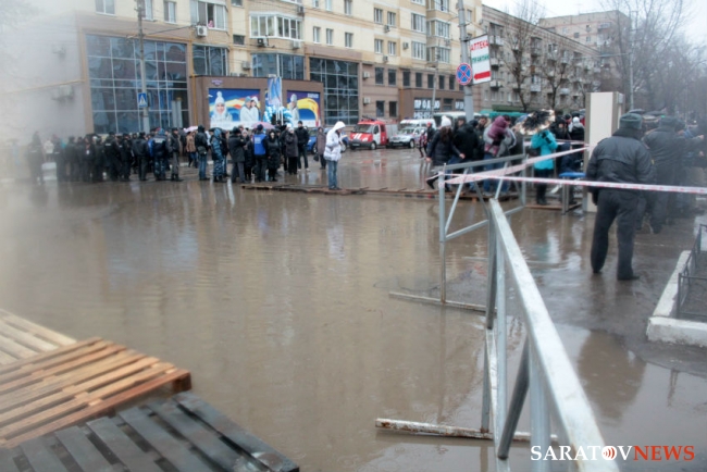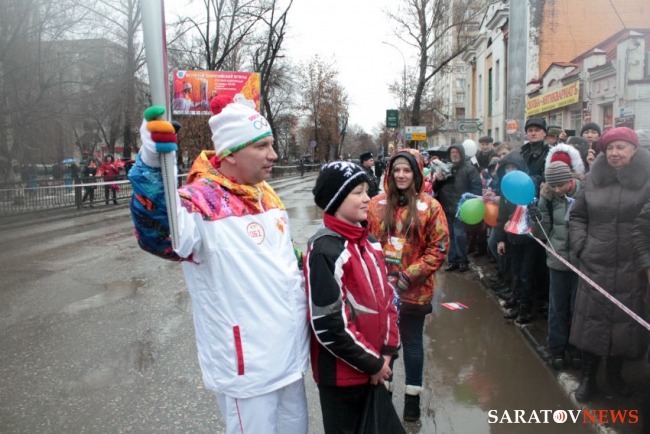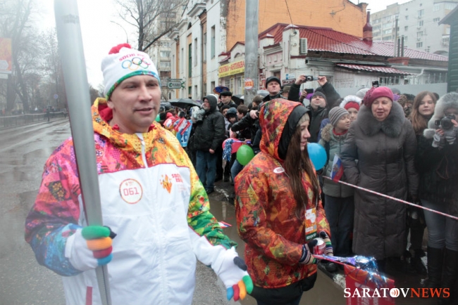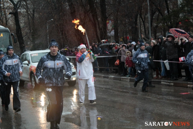 В Саратове плохие погодные условия внесли свои коррективы в программу эстафеты олимпийского огня «Сочи-2014». Из-за них пришлось отменить перфоманс с футбольными мячами на стадионе «Локомотив», а также этап с лыжниками. Помимо этого факелоносцам иногда приходится огибать огромные лужи чуть ли не по бордюру. Страдают от погоды и журналисты, у многих фотокоров проблемы с техникой.