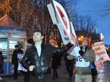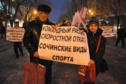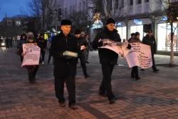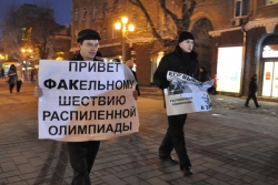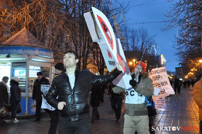 Вчера, 13 января, активисты КПРФ устроили костюмированное шествие по проспекту Кирова в Саратове, пародируя эстафету олимпийского огня, местный этап которой горожане наблюдали в минувшую субботу.