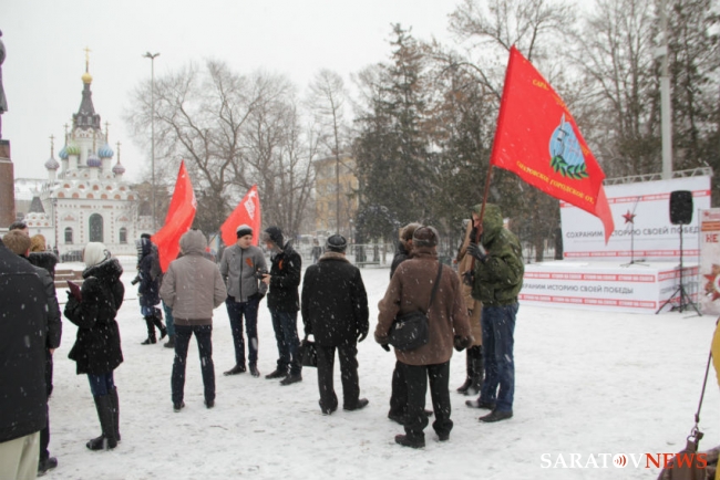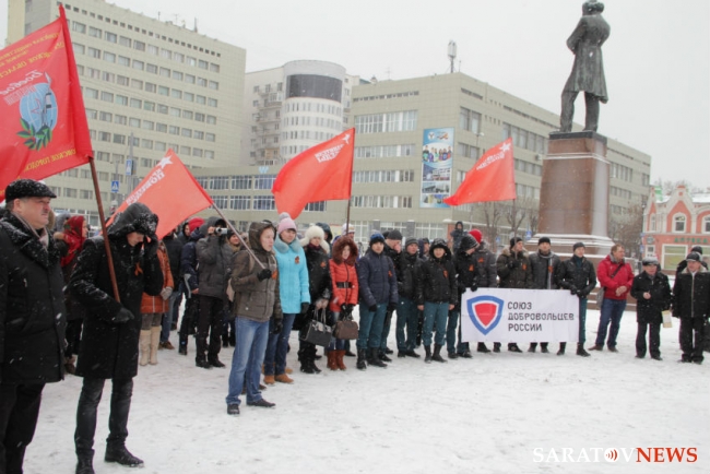 Сегодня в Саратове у памятника Чернышевскому прошел митинг в поддержку председателя областного комитета ветеранов Георгия Фролова. Мероприятие организовано и проведено волонтерами движения "Хранители победы".
