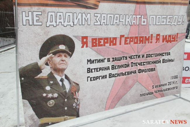 Честь и достоинство ветерана молодым активистам пришлось защищать после нападок в адрес Фролова главы саратовского регионального отделения партии "Российский общенародный союз" Павла Галактионова. В частности, Галактионов заявил, что Георгий Фролов присвоил себе чужие заслуги и ветераном войны не является.