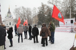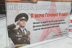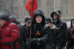 На митинг пришли, в основном, представители молодого поколения в количестве чуть более сотни человек. Они держали красные флаги, а также носили георгиевские ленты. Как удалось выяснить корреспонденту, это, главным образом, - сторонники движения "Хранители победы", а также активисты из "Городского молодежного центра". Накануне мероприятия в кинотеатре "Пионер" очевидцы заметили отпечатанные на глянцевой бумаге листовки с призывом присоединиться к защите чести и достоинства ветерана, однако тех, кто пришел на митинг, узнав о его проведении из листовок, найти не удалось.