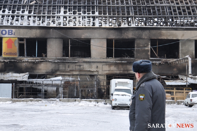 Сегодня утром после случившегося накануне, 21 февраля, пожара на Сенном рынке в Саратове с окрестных улиц сняли оцепление, но территория бывшего торгового центра по-прежнему закрыта для граждан. Напомним, вчера выгорело главное здание рынка на пеерсечении Большой Горной и Танкистов. Пожар начался в маленькой торговой палатке и был ликвидирован, но вскоре заполыхало все здание. С восьмого часа вечера до поздней ночи на месте трудились огнеборцы, представители всех экстренных служб города. Прибыли вице-губернатор Денис Фадеев, зампред областного правительства Сергей Канчер, министр экономического развития региона Владимир Пожаров, руководитель ГУ МВД Сергей Аренин, его коллега из СУ СКР Николай Никитин. На место стянули 305 полицейских, которые оцепили прилегющие улицы и удерживали толпу зевак на расстоянии.