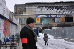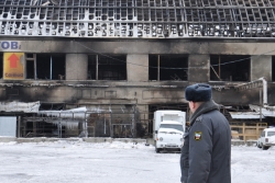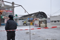 Сегодня охраняемый периметр сокращен до площади палаточного рынка вокруг сгоревшего здания. Пожарных расчетов на месте уже нет, но сотрудники МЧС продолжают работать. Универмаг "Меркурий" работает в прежнем режиме.
