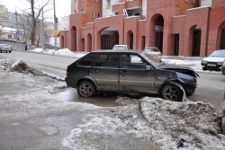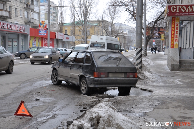 Сегодня днем около 16.00 в Волжском районе Саратова на улице Чернышевского недалеко от пересечения с Октябрьской прозошло ДТП с маршруткой №105. Ее в правое крыло ударил "ВАЗ-2100", выезжавший из арки дома. У легковушки смят капот, у микроавтобуса сдулось правое переднее колесо и слегка повреждены двери. Автомобилей экстренных служб и ГИБДД на месте происшествия замечено не было. Информации о пострадавших нет.