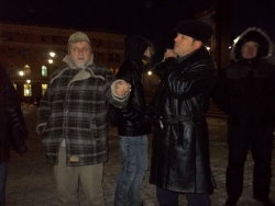 Проведению схода горожан, "неравнодушных к произволу властей и правоохранительных органов" не смог помешать и двадцатиградусный мороз. На место схода пришли гражданские активисты, такие как Григорий Ахтырко, Андрей Калашников, оппозиционер Александр Стрыгин.