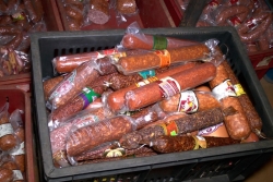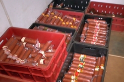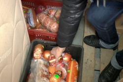 Всего иъято порядка 2 тонн колбасных изделий и 180 бутылок водки, а также этикетки, полиэтиленовые упаковки, приборы для проставления даты. По данному факту проводится проверка.