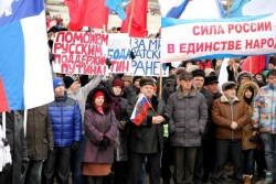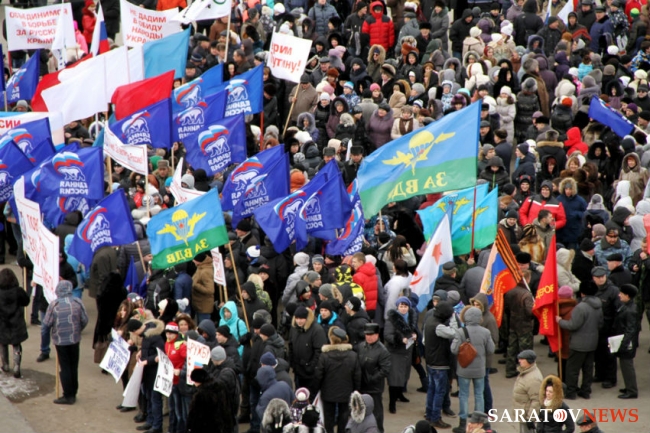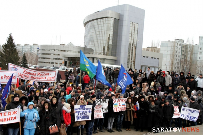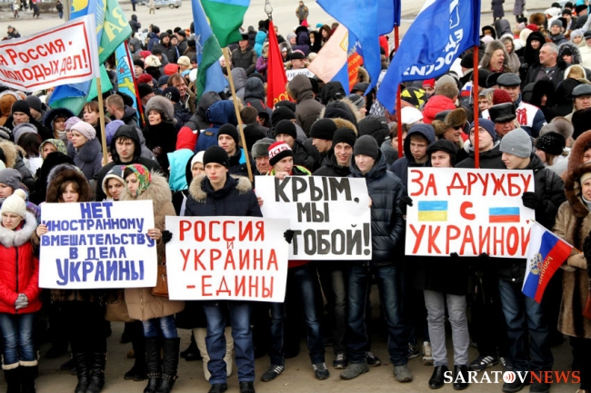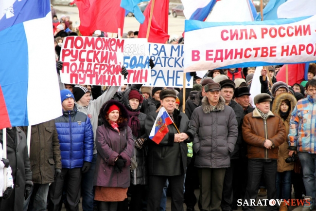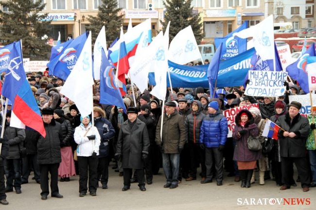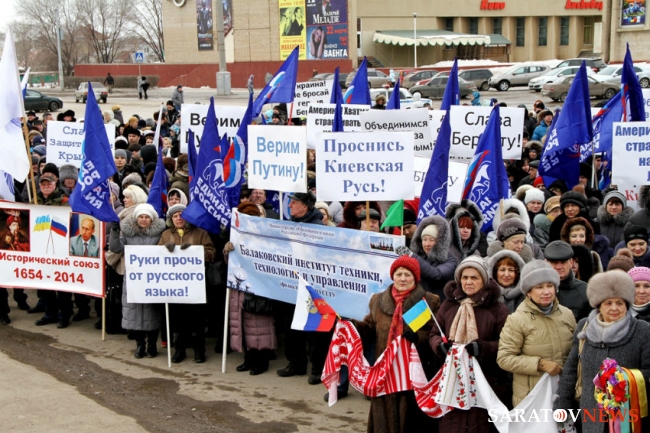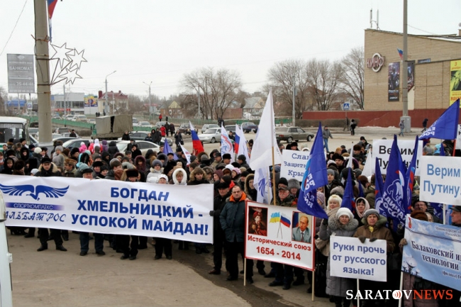 В Балакове Саратовской области на центральной площади прошел митинг в поддержку русскоязычного населения Украины, сообщает пресс-служба регионального отделения партии "Единая Россия". Отмечается, что поддержать украинцев пришли трудовые коллективы предприятий и учреждений района, студенты, преподаватели, общественные объединения, представители национальных диаспор. Всего на площадь пришли около трех тысяч человек.