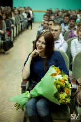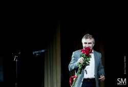 В завершение встречи ректор Сергей Суровов презентовал Леониду Каневскому подарок в память об академии, а студенты вручили актеру цветы.