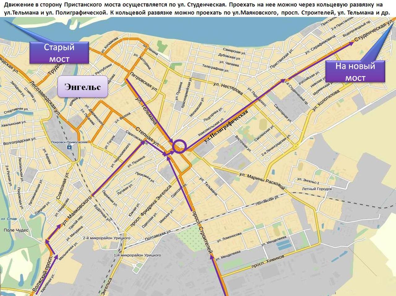 На сайте комитета транспорта Саратовской области опубликованы схемы движения по Саратову и Энгельсу в период закрытия автомобильного моста Саратов-Энгельс, сообщает пресс-служба правительства региона.