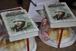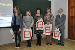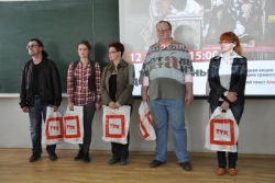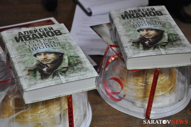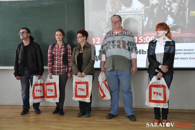 "Суперволонтеров" диктанта, главных редакторов СМИ и преподавателей ЛИЕН, которые выступили на Диктанте в качестве чтецов, тоже наградили: сладкими спонсорскими подарками и экземплярами книги автора текста диктанта-2014 Алексея Иванова "Географ глобус пропил".