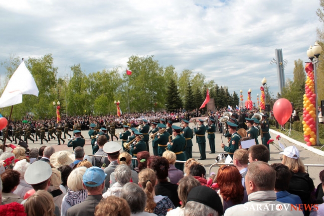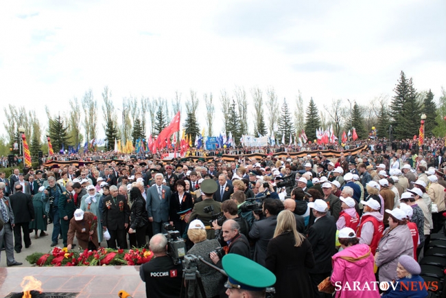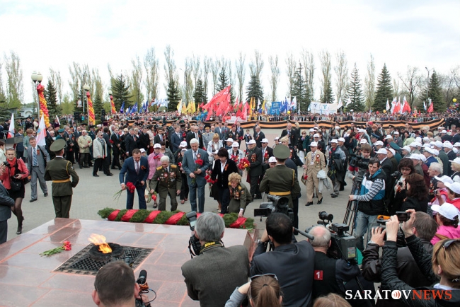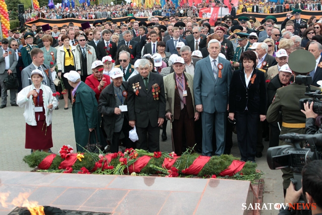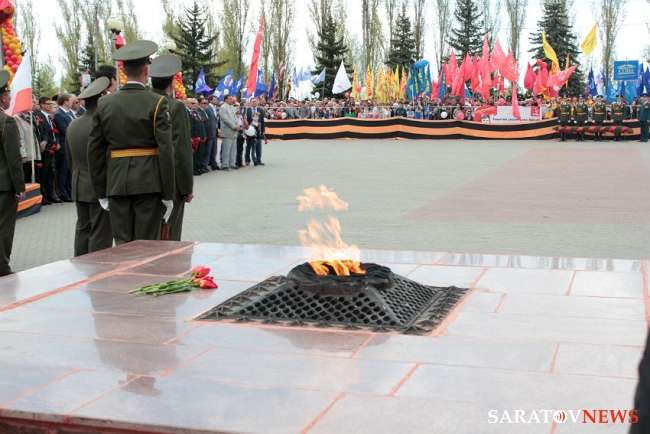 Сегодня в парке Победы на Соколовой горе в Волжском районе Саратова состоялся торжественный митинг, посвященный празднованию 9 мая. В мероприятии приняли участие первые лица областной и городской власти, около сотни ветеранов войны, представители политических партий и общественные деятели.