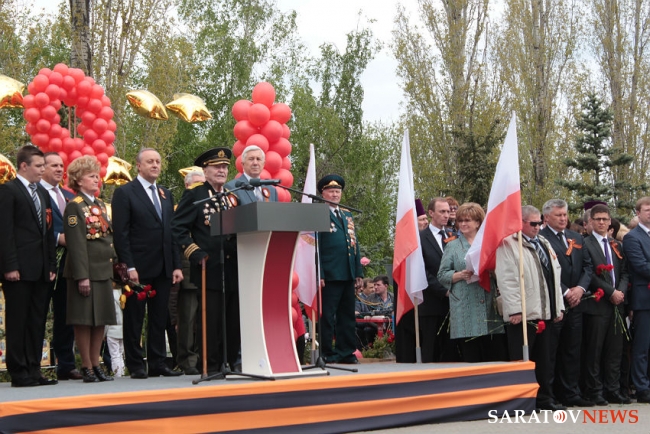 По словам губернатора области Валерия Радаева, символично, что именно в этот год Крым и Севастополь были присоеденены к России. "Мы - единый народ. У нас одна история, общая судьба, и отныне неделимая территория. Мы вместе воевали и вместе победили", - заявил глава региона.