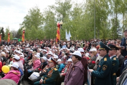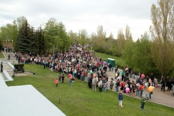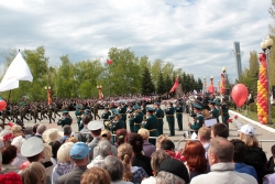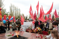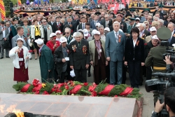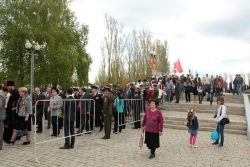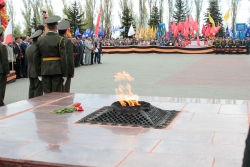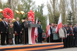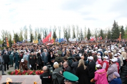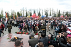 Также, слово у трибуны было предоставлено ветерану ВОВ, который в своем выступлении обратился, главным образом, к юному поколению, и напомнил, что защита Родины является долгом каждого гражданина. "Кто к нам с мечом придет, от меча и погибнет", - заметил ветеран. Митинг завершился впуском белых воздушных шаров и торжественной церемонией возложения к Вечному огню гирляды памяти и цветов. Первыми этой чести удостоились члены правительства области, а также ветераны. Далее цветы стали возлагать представители партий и общественных движений. Представители областной и городской власти также поднялись и возложили цветы к стелле "Журавли".