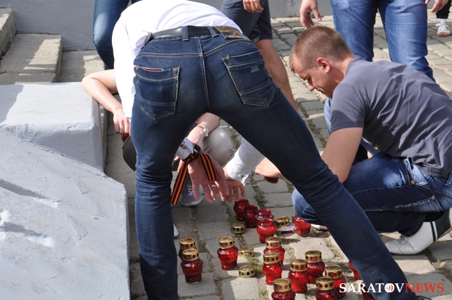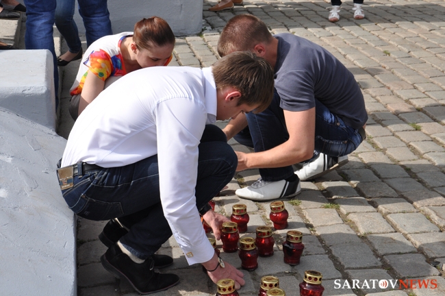 В саратовской траурной акции приняли участие представители "Молодой гвардии" "Единой России", Молодежного парламента Саратовской области, Общественной палаты, местных вузов и т.д. В качестве одного из фотографов выступил член ОПы Всеволод Хаценко. Всего же участников набралось менее двух десятков, хотя, по заверениям организаторов, приглашения рассылались куда большему числу людей. Организаторы подчеркивали, что акция не носила политический характер. Из символики участники носили только черно-оранжевые ленточки.