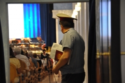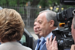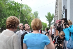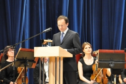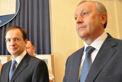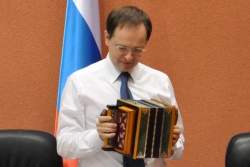 Перед началом концерта федеральному чиновнику устроили мини-экскурсию по обновленному зданию. Министр культуры области Светлана Краснощекова лично рассказывала, в каком ужасном состоянии находились фундамент, стены и колонны, когда началась реконструкция. Открывая первый концерт, Владимир Ростиславович не смог удержаться от восторженного отзыва. Произнеся официальное поздравление, он заявил: "А теперь я скажу от себя. Во-первых, когда я ходил по зданию, у меня в голове вертелся старый советский штамп: дворец культуры. Филармония - это настоящий дворец настоящей культуры. Во-вторых, это удивительно, как удалось завершить реконструкцию за такие средства. Я трижды переспросил, какова площадь филармонии, сколько было сделано и сколько на это потрачено, и теперь могу точно сказать: саратовская филармония - пример того, как каждая копейка послужила благому делу". Министр заверил, что теперь его ведомство будет верным союзником Саратовской области; такого рода проекты должны воплощаться снова.