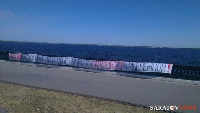 Сегодня, 30 мая, саратовцы могли наблюдать на Новой Набережной необычный плакат, прикрепленный к металлическому ограждению. Надпись, выполненная маркерами двух цветов гласила: "Санкции! Бараку Обаме запрещено гулять по саратовской набережной!". Кто стал автором запрещающего плаката на данный момент неизвестно.