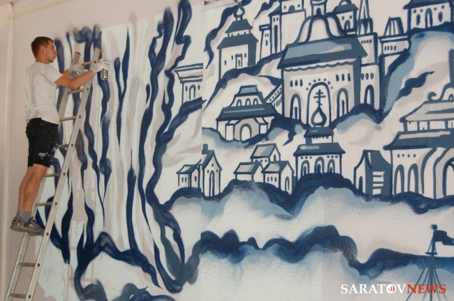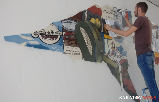 "Для реализации сюжета я решил изобразить коллаж из предметов, которые были сделаны в Саратове, и поместить их в обрамление в форме стерляди, которая, как известно, является одним из символов нашего города. При взгляде на это изображение становится понятно, что гордость Саратова - это то, из чего он состоит", - рассказал один из участников фестиваля Даниил Данилов.