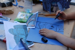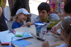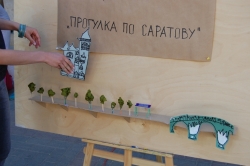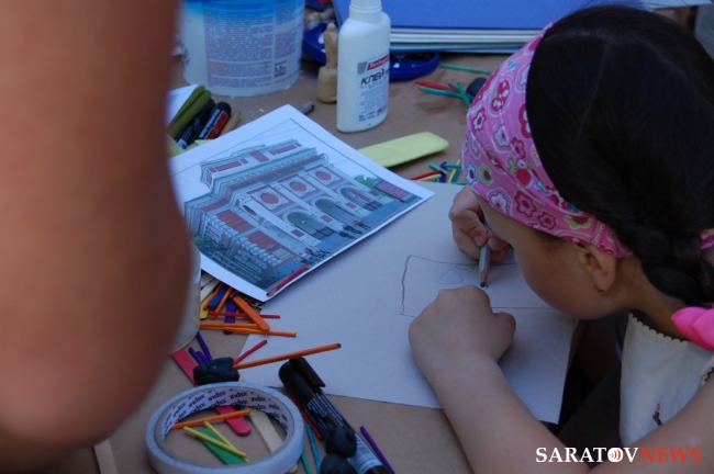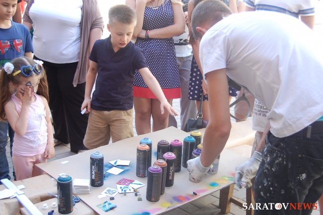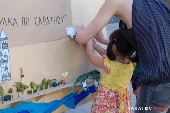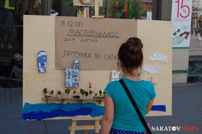 В тот же день состоялся мастер-класс для детей. На воркшопе "Прогулка по Саратову" они создавали из подручных материалов шедевры саратовской архитектуры и памятники, а заодно - облака, деревья и даже Волгу. В воскресенье художник Олег Зябкин организовал для ребят необычную творческую площадку. Он создавал с помощью трафаретной живописи памятные магниты, а ученики собравшиеся у места проведения мастер-класса, могли выбрать цветовую гамму, оформление, рисунок, а потом - забрать понравившийся сувенир с собой.