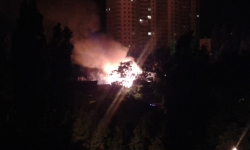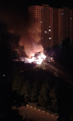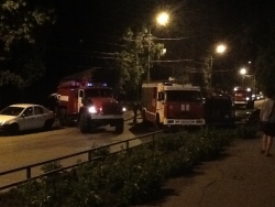 "Напротив больницы загорелось несколько деревянных зданий, говорят - проводка заискрилась, пламя выше деревьев, приехало 7 пожарных расчетов, 1 МЧС, 3 скорых помощи, 3 наряда ДПС", - отмечается в сообщении.
