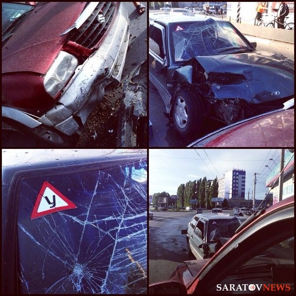 Вчера, 15 июня, в Саратове на проспекте 50 лет октября под трамвайным путепроводом на Третьей Дачной произошло столкновение между "ВАЗ-2113" и "Сузуки Гранд Витара". Об этом на своей странице Вконтакте сообщил водитель иномарки, зарегистрированный под именем Владислав "nks" Жданов.