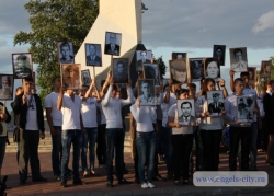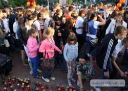 Память погибших почтили минутой молчания и в завершении митинга участники акции возложили к стеле цветы и свечи.