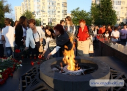 22 июня, в День памяти и скорби, жители Энгельса Саратовской области собрались на набережной у стеллы "Героям фронта и тыла", сообщает пресс-служба администрации Энгельсского района.