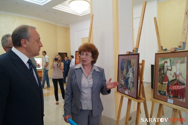 В четверг, 26 июня, перед началом очередного заседания правительства Саратовской области губернатор региона Валерий Радаев осмотрел выставку областного конкурса детского рисунка "Театр глазами детей" и прикладного народного творчества. Обе они расположились в холле здания правительства. Вместе с ним выставку посетили заместитель председателя правительства Михаил Горемыко, главный прокурор области Владимир Степанов, министр Борис Шинчук.
