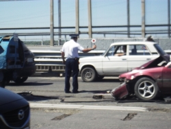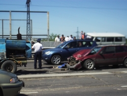 55-летний рабочий от полученных травм скончался на месте, водитель "Хонды" госпитализирован. В течение часа после аварии на мосту была пробка.