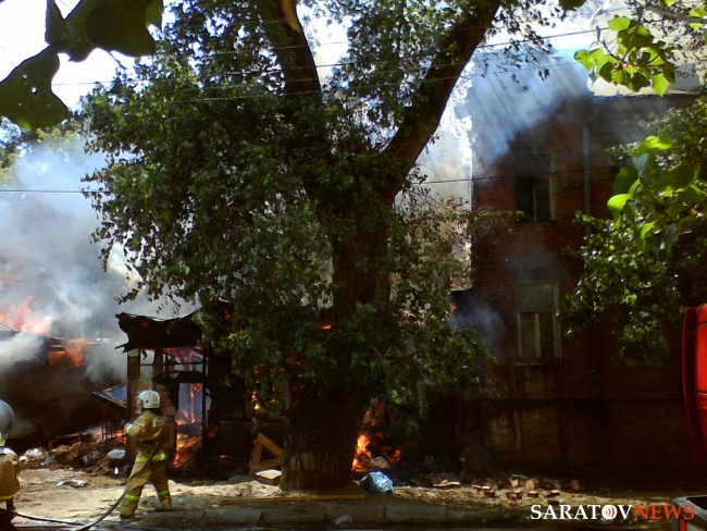 Несколько минут назад рухнула стена двухэтажного дома на улице Посадского, 157. Сейчас по этому адресу горят четыре здания. Обломками частично завалило стоявшую рядом "девятку", сообщает корреспондент Saratovnews с места событий. Позже владелец отогнал авто в безопастное место. На тушении работает несколько пожарных расчетов.