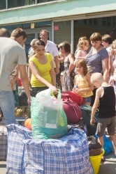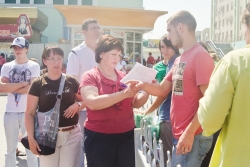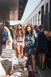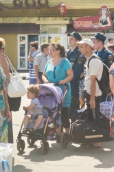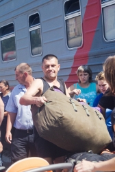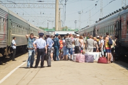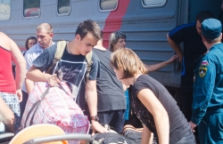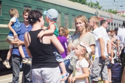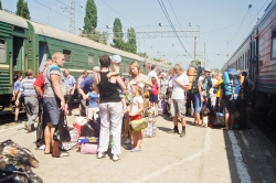Сегодня, 13 августа, в 13.15 на железнодорожном вокзале Саратова встречали очередную партию беженцев с юго-востока Украины. По примерным оценкам, в поезде, следующем через Саратов от станции Лихая Ростовской области, приехали 373 человек.