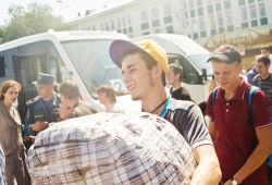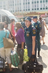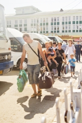 В толпе прибывших были инвалиды, люди с грудными детьми, домашними животными. На вокзале беженцев встретили саратовские волонтеры и помогли им с переноской вещей к автобусам. В эти минуты вынужденных переселенцев под присмотром сотрудников МЧС, полицейских и социальных работников рассаживают в 16 автобусов, на которых отвезут в пункты временного размещения.