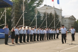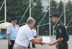 На площади построились представители всех подразделений города: патрульно-постовая служба, ГИБДД, вневедомственная охрана, следственно-оперативные группы, эксперты-криминалисты, а также участники добровольной народной дружины. Перед ними были поставлены задачи на текущий момент: рассказано о наиболее серьезных преступлениях, до личного состава были доведены ориентировки на разыскиваемых злоумышленников. Также благодарностями и премиями были отмечены отличившиеся сотрудники.