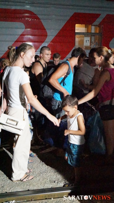 Этой ночью, с 14 на 15 августа, в 23.39 поездом Анапа-Саратов в областной центр прибыла очередная группа беженцев из Украины. Это 63 человека, 24 из них - дети, в том числе, грудные.