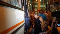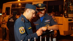 Для встречи их на вокзал приехали как представители региональной власти и ГУ МЧС, так и добровольцы. Для транспортировки людей приготовили четыре автобуса. Встречающие помогли людям сойти с поезда, донести сумки с перрона до транспорта и погрузиться в машины. Когда все расселись по автобусам, организованная автобусная колонна в сопровождении автомобиля областного ГИБДД отправилась в путь.