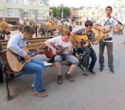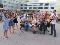 Сегодня на проспекте Кирова выступил музыкальный коллектив из 7 человек, который исполнил популярные рок-композиции, а также сербскую и ирландскую музыку, сообщает пресс-служба администрации Фрунзенского района. Среди инструментов ансамбля: флейта, две скрипки, три гитары, в том числе двенадцатиструнная, бубен.