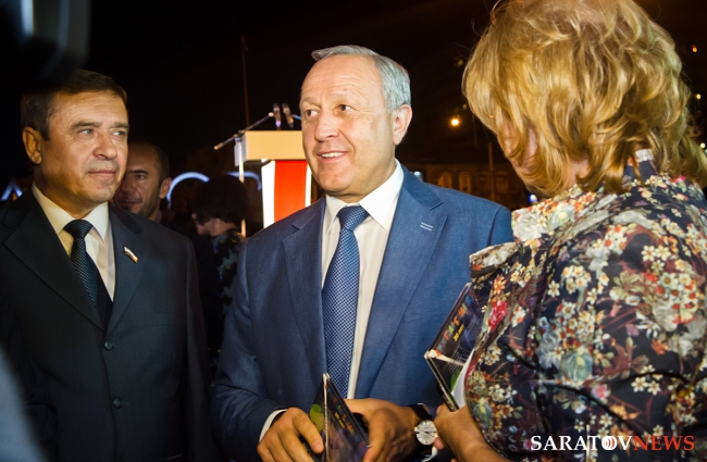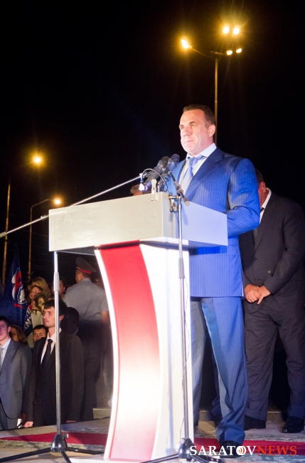 Сегодня в 21.00 в Саратове при большом стечении народа состоялось торжественное открытие "старого" автомобильного моста, соединяющего город с Энгельсом. Из первых лиц Саратова и области присутствовали: губернатор Валерий Радаев, спикер областной думы Владимир Капкаев, вице-губернатор Денис Фадеев, министр строительства и ЖКХ Дмитрий Тепин, его коллега из минпрома Сергей Лисовский, глава минсельхоза Александр Соловьев, ГФИ Марина Алешина, глава Саратова Олег Грищенко и другие.