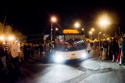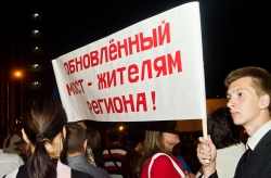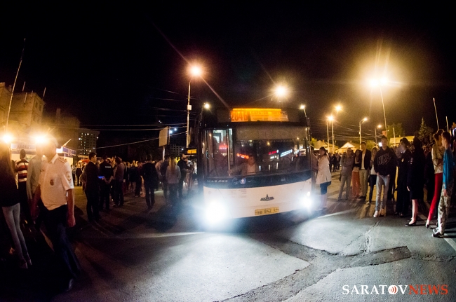 Первой через мост в сторону Энгельса проехала колонна байкеров, за ней - новенький гибридный троллейбус, везший чиновников и народных избранников. В заключение церемонии над мостом грянул салют. Саратовцы встретили его овациями и маханием плакатами с надписями типа "Спасибо губернатору за ремонт моста" и благодарностями подрядчику - ОАО "Волгамост".