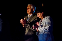 На больших экранах, установленных по бокам въезда на мост, показали историю этого сооружения - с момента возведения и до текущего момента. В финальных словах диктора звучала надежда, что саратовцам, ставшим свидетелями открытия моста после столь масштабного ремонта, удастся в некоторой степени разделить чувства тех, кто присутствовал на церемонии введения сооружения в эксплуатацию непосредственно после его постройки.