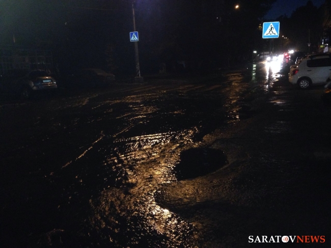 Вчера, 1 сентября, в центре Саратова произошла коммунальная авария с порывом водопровода, сообщили Saratovnews очевидцы. На улице Университетская между Посадского и Зарубина в связи с ЧП приключился настоящий потоп, под водой почти полностью скрылась проезжая часть.