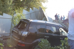 Вчера в Саратове за автовокзалом водитель "Митсубиси Аутлендер" не справился с управлением снес забор и влетел во двор частного дома,. Как рассказал Saratovnews владелец соседнего участка Михаил Левченко, авария произошла около 14.40. "Машина пробила бордюр, влетела в кучу земли, перевернулась и оказалась во дворе. Слава богу все живы, но молодого человека, который был за рулем увезла скорая. С ним еще был пассажир без видимых травм. По счастливой случайности я задержался перед выездом из дома, а то бы точно столкнулись", - поделился саратовец, отметив, что сотрудники ДПС прибыли на место спустя только полтора часа.